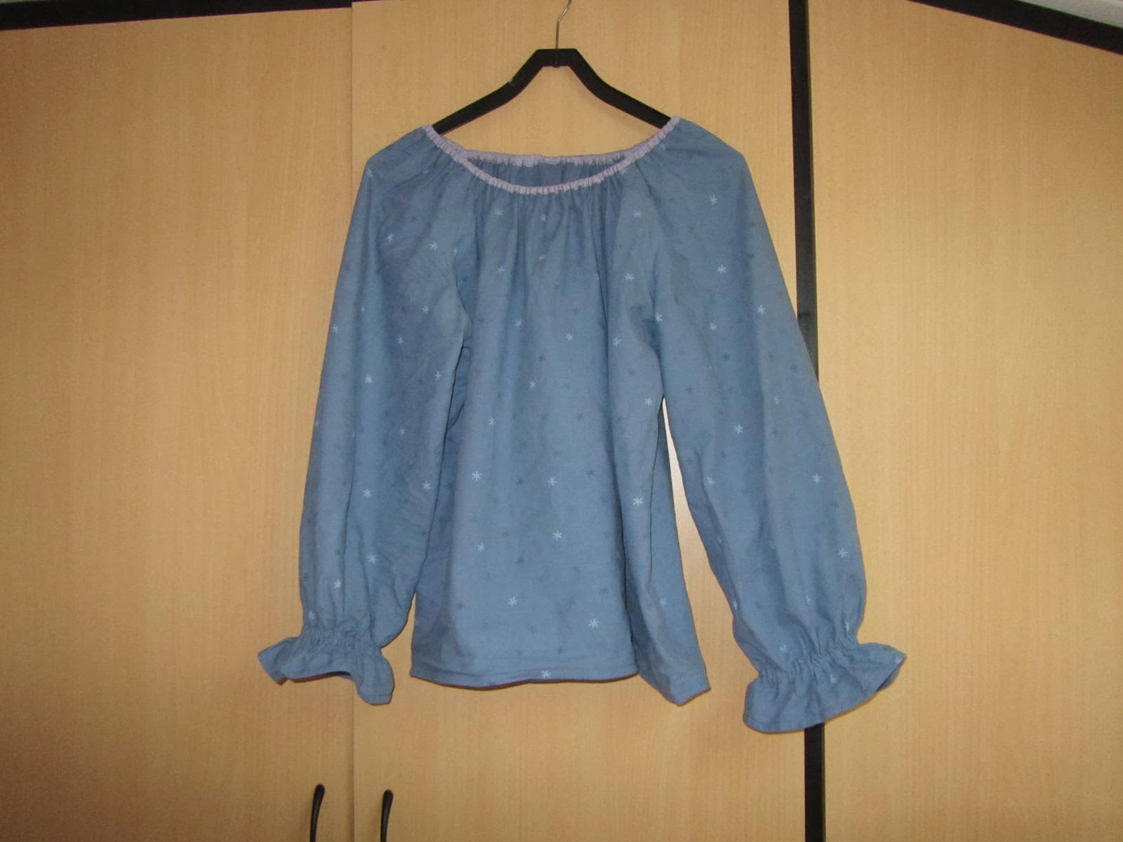 Der Schnitt für die dunkelblaue Bluse ist eigentlich für elastischen Stoff gedacht. Der Ausschnitt war viel zu weit, weswegen ich ein Gummi eingezogen habe.