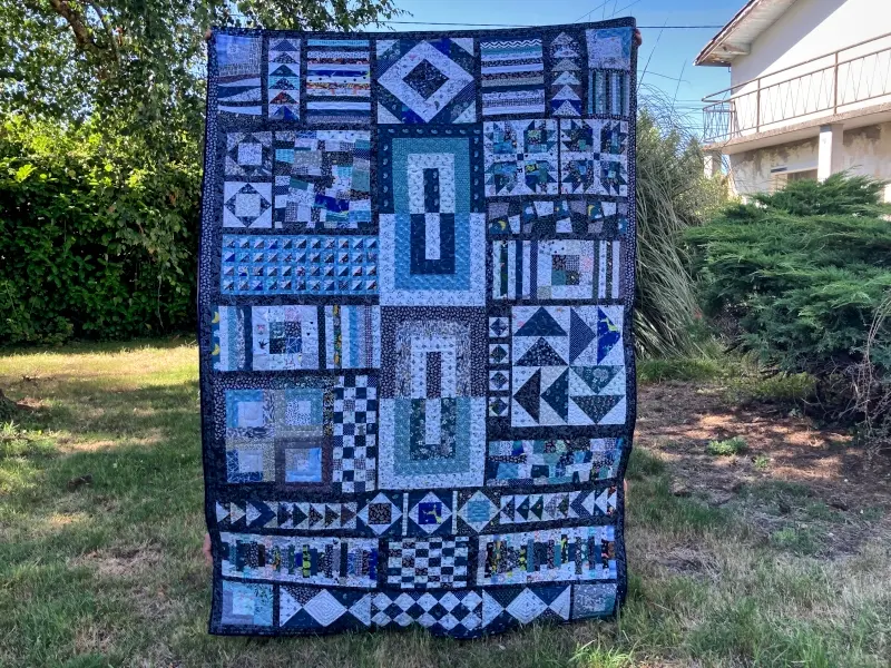 Dieser Quilt entstand im Rahmen eines Quilt-Along von Katharina, der von Januar bis Dezember 2024 stattfand, jeden Monat wurde ein neuer Block bzw. mehrere genäht. Am letzten Dienstag habe ich ihn nun endlich vollendet. Hier sieht man etwas besser ein paar Details: