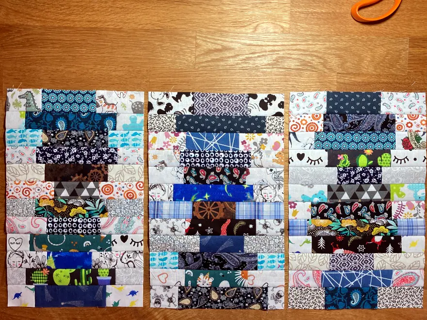 Die ersten drei Blöcke hatte ich am 27.01. letzten Jahres genäht: